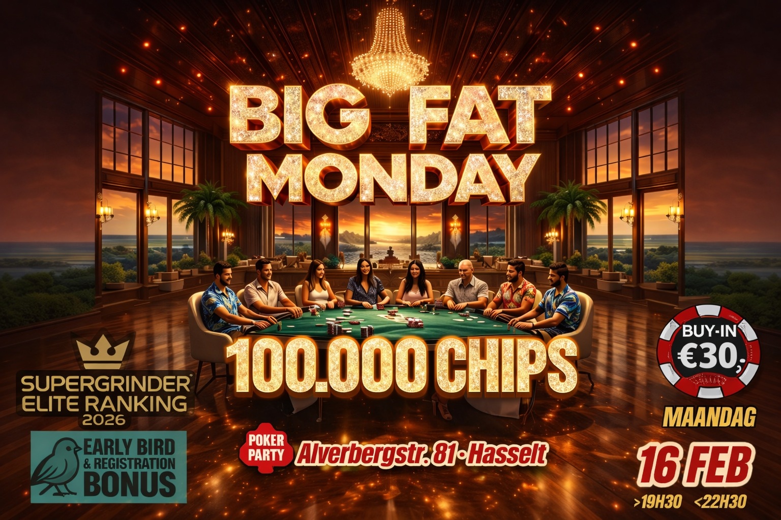 € 30 BUY-IN - START 19H00 - LATE REG/END RE-BUY 22H30