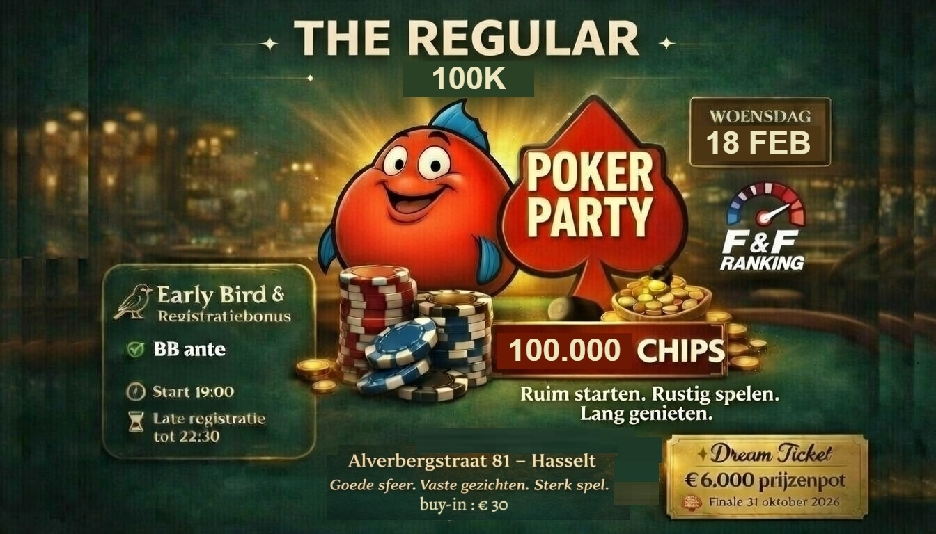 € 50 BUY-IN - START 19H00 - LATE REG/END RE-BUY 22H30
