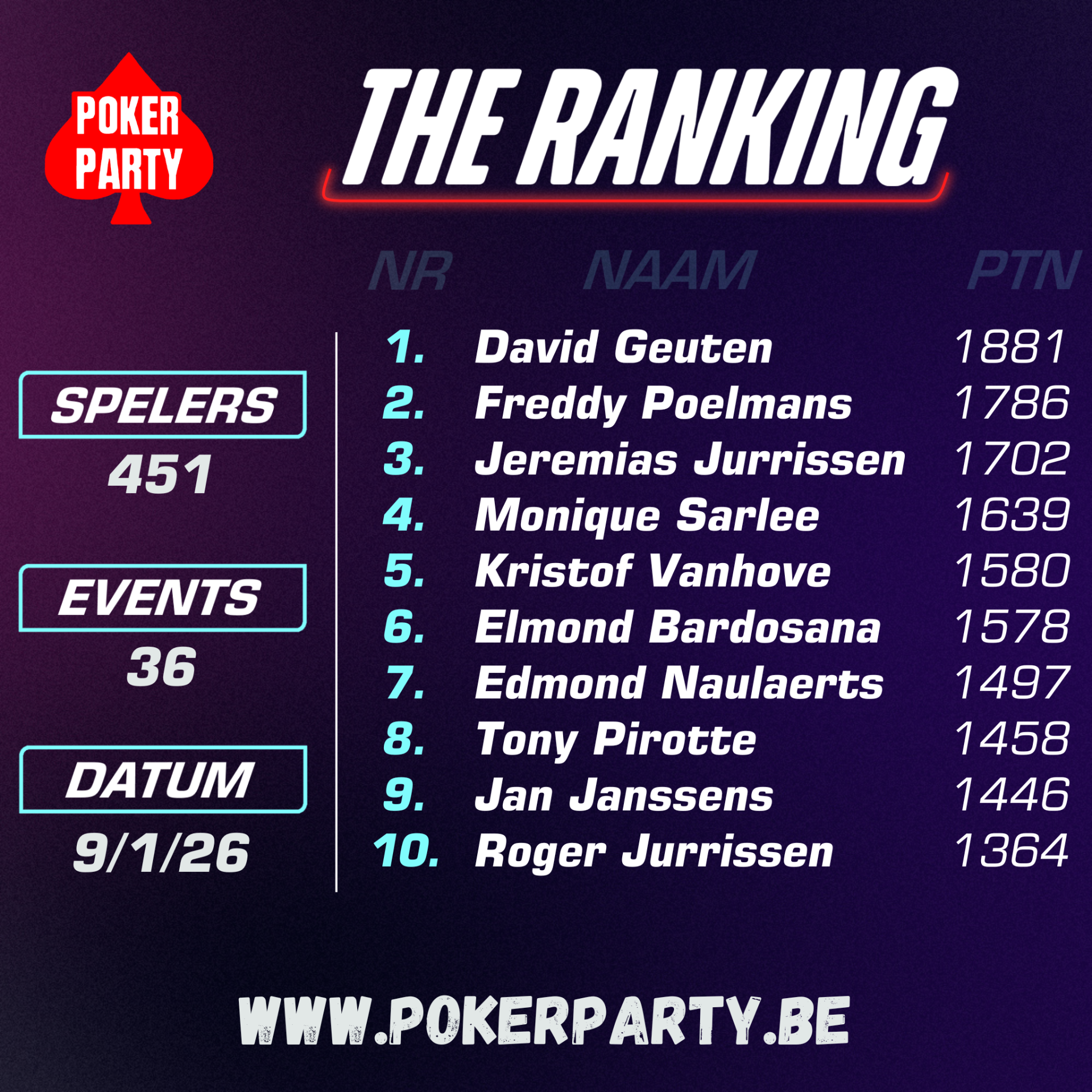 En we verdelen €1.000 onder de Top 9 van de ranking (30/1/26)