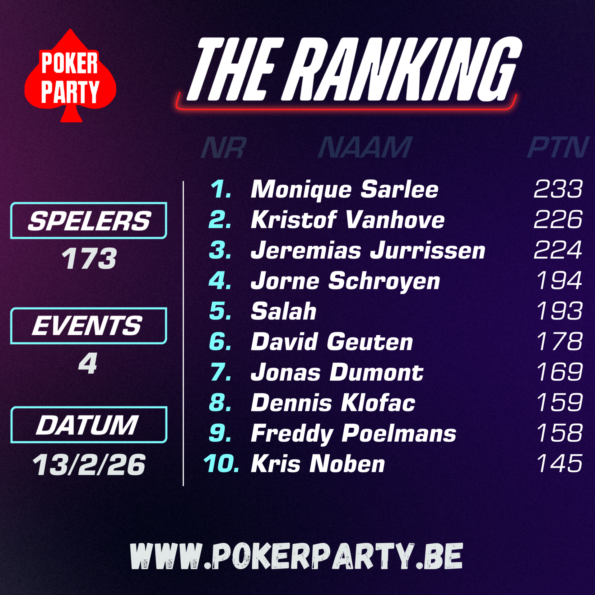 📅 Start ranking: 2 FEBRUARI 2026