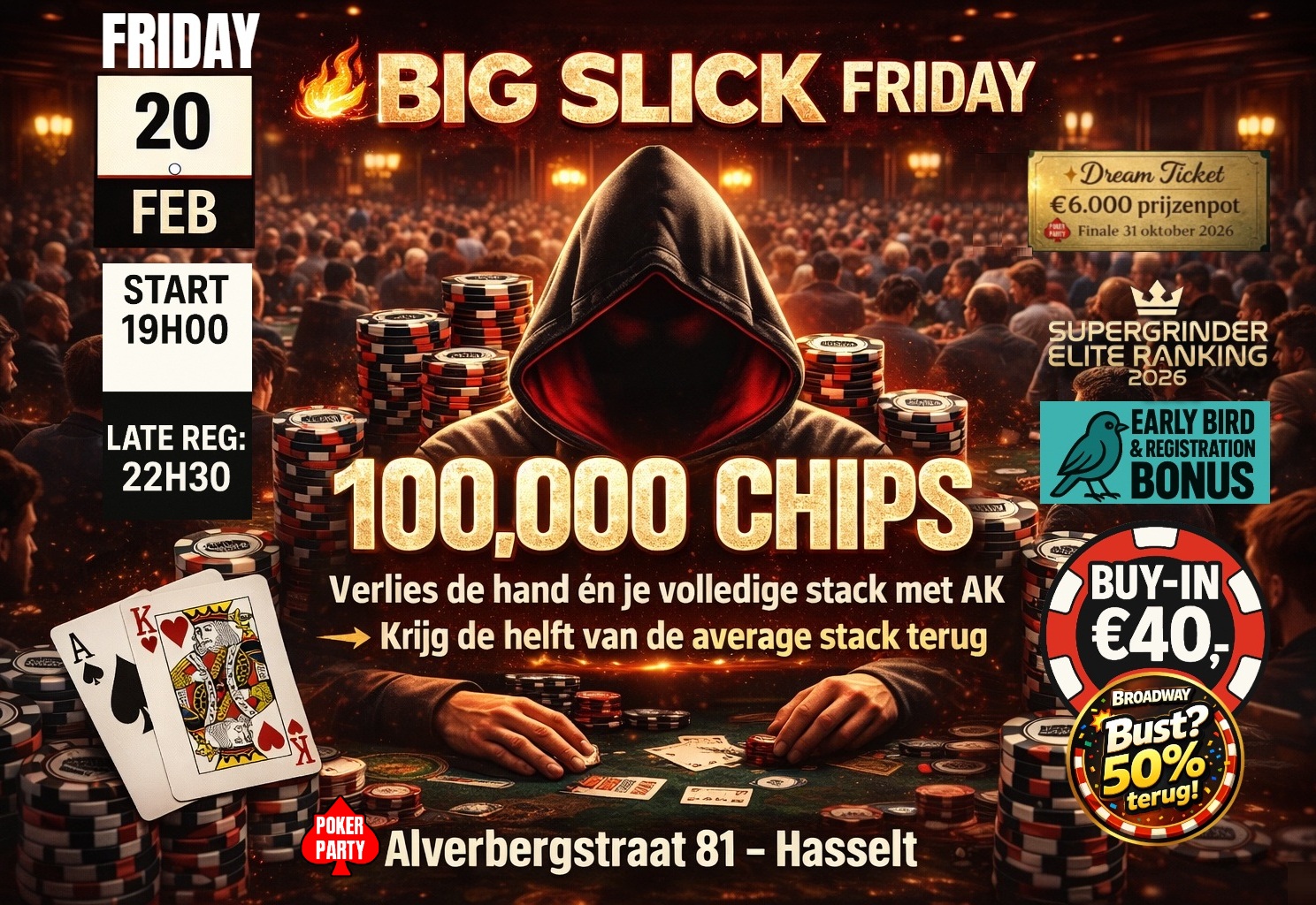 De overige €2000 CASH gaat rechtstreeks in de finale, met een verwachte prijzenpot: maar liefst €5.000.