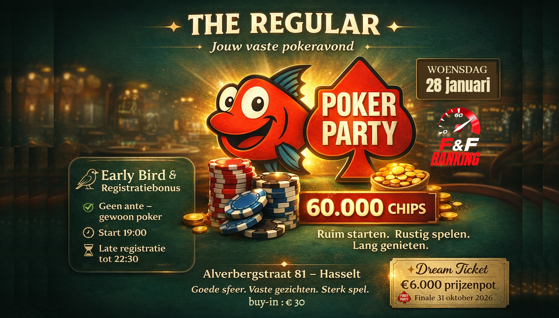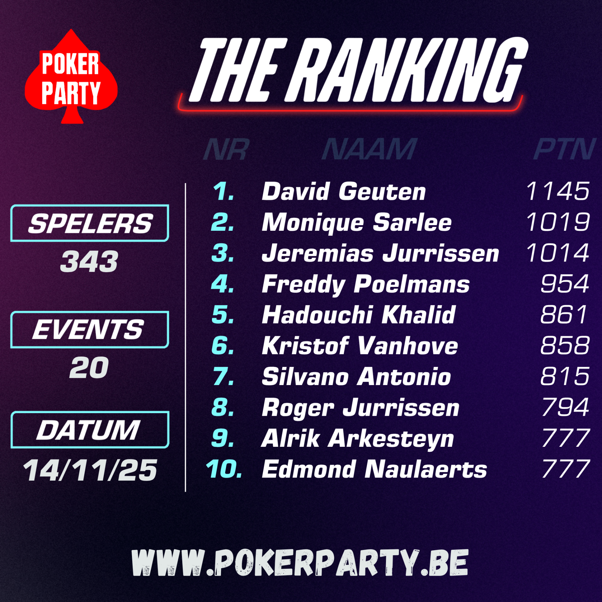 DE RANKING IS een EXTRA bovenop de prijzenpot die we na elk toernooi uitkeren !