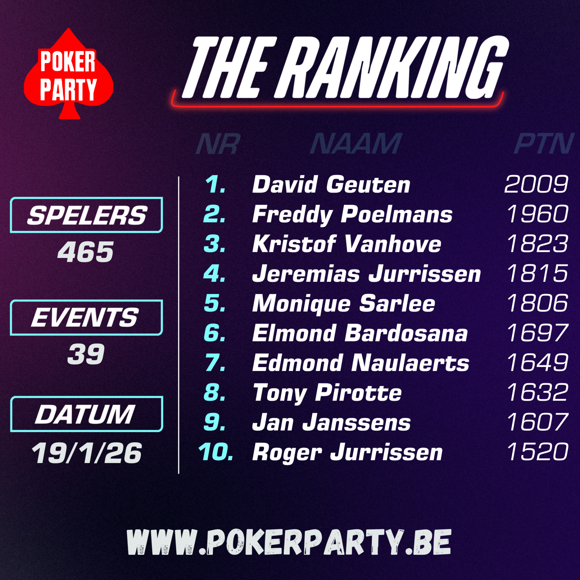 📅 Einde ranking: 31 JANUARI 2026
