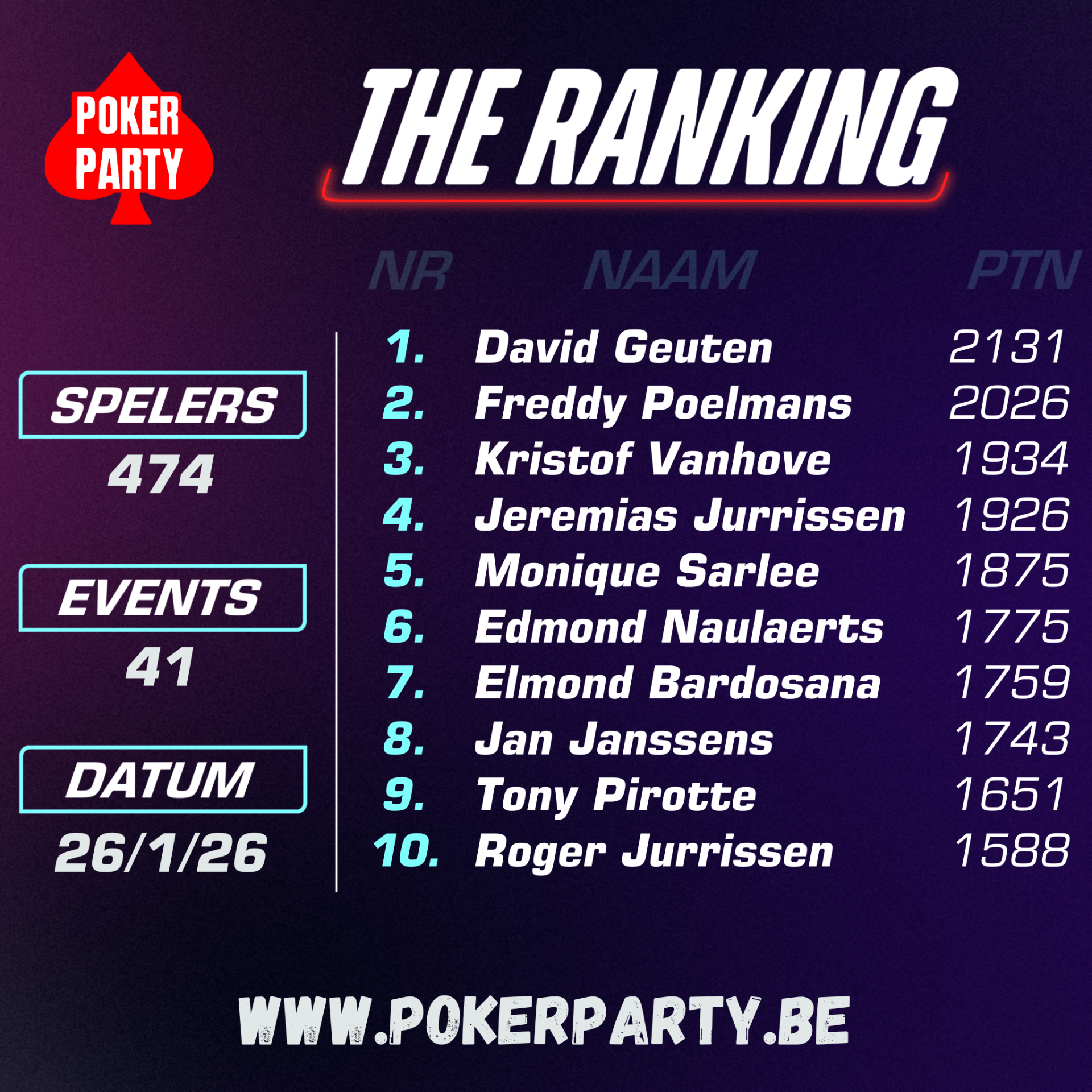 En we verdelen €1.000 onder de Top 9 van de ranking (30/1/26)