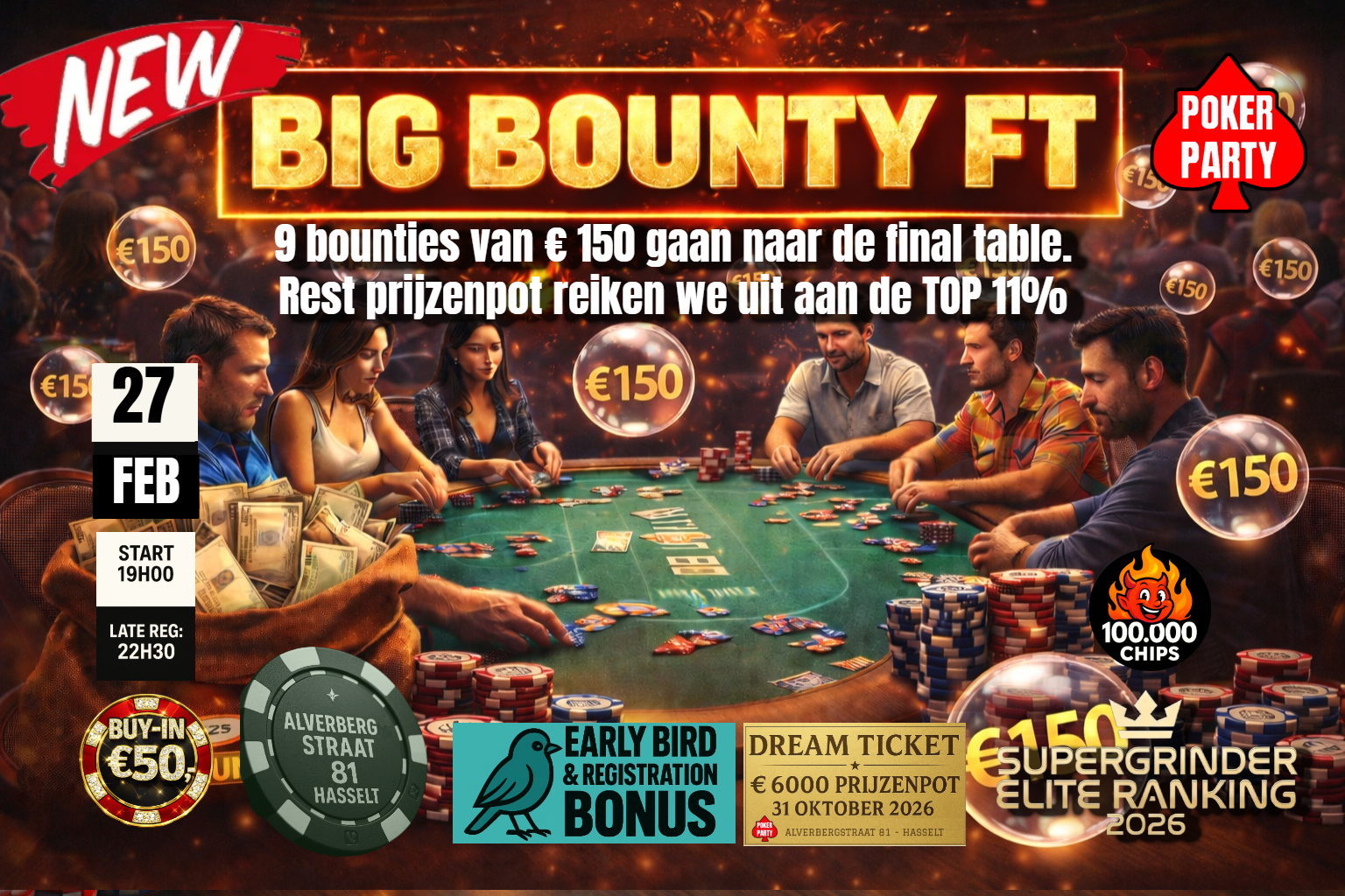 In een spectaculaire Mystery Bounty. Met een maximale bounty van €1.000!